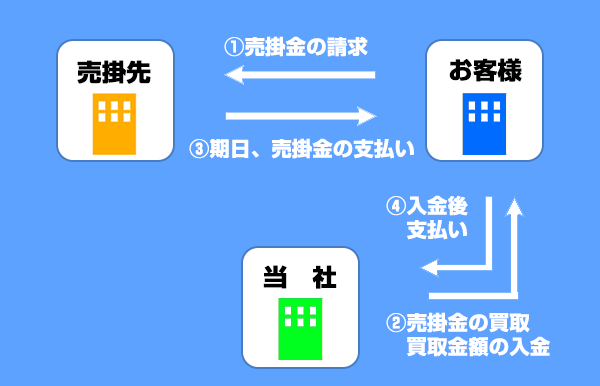 4.買取りました売掛金100万円を、売掛先様より当社へお支払いいただきます。